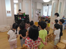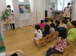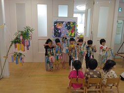 真剣な表情で最後まで見る姿が見られました!みんなで「七夕」の歌を歌い、織姫と彦星に届きますように…☆とお祈りしました!