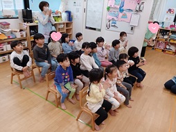初めに、「♪うれしいひなまつり」の歌に合わせてペープサートを楽しみました!