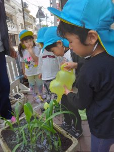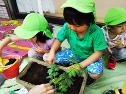 5月食育 苗植えをしました★ 2024/05/14 ★五月の食育 苗植え★ 五月の食育は、各クラス好きな野菜をリクエストして、苗植えをしました。 自分たちで選んだ野菜は、愛情も人一倍‼ 苗植えや水やりをしながら楽しそうな表情を見せてくれました。 きっと子どもたちの笑顔が植物の一番の生長に繋がるのかな(*^^*) 夏頃に立派な実を付けてくれることを祈りながら、大切に育てていこうね☆