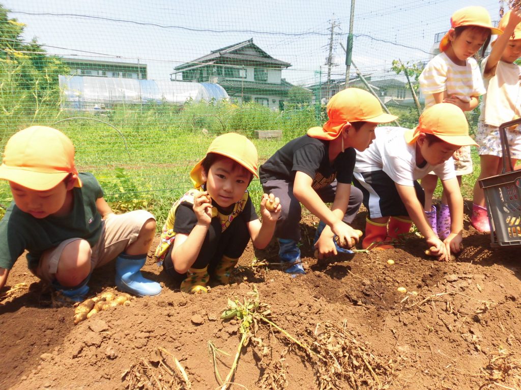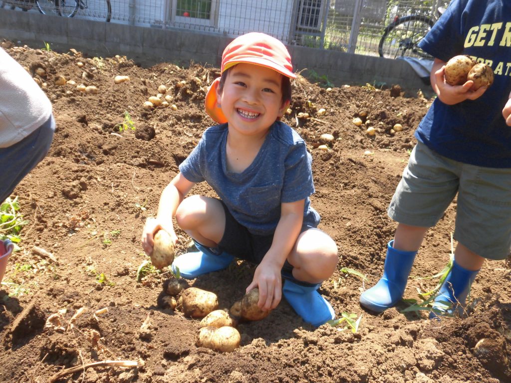 みんなの為に一番頑張ってくれたのが、ゆり組さん!かごがいくつも山盛りになるくらいに、じゃがいもを掘ってくれました(*^-^*)水分補給と休憩が終わって畑に戻ってきてくれた時の、元気いっぱいの笑顔とみんなの軽やかな足取りで先生も元気がでましたよ☆彡