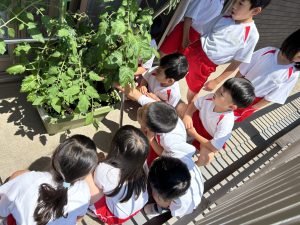 ミニトマトの収穫🍅 2025/08/08 ゆりぐみさんでは春からテラスでミニトマトを育てていました! お水をあげて… 収穫-!!! 収穫したミニトマトは順番にお家に持ち帰りました☆ お家ではどんな風にして食べたのかな~?😋