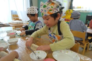 ばら組さん・ゆり組さんは“まきす”を使って本格的に作りました✨みんな真剣な表情ですね!