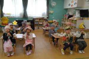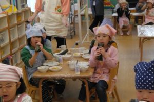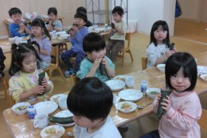 今年は東北東。願い事を心の中で思いながらみんなで食べます。自分で作った恵方巻に思わず「美味しいね!💗」って言葉がでちゃったお友だちもいましたね( *´艸`)