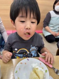 ケーキを見て「フワフワ~」と答える姿も!