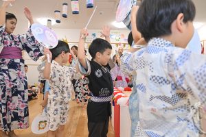最後はやぐらを囲んで、昔ならではの盆踊り🪭