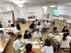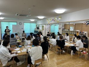 秋から始まるお散歩や戸外保育の危険について、パートの先生も含め全員で話し合いました。
