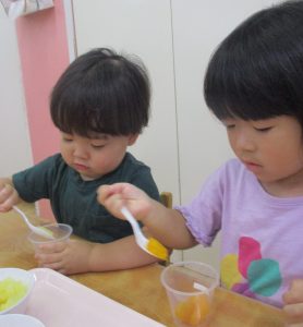 『どれにしようかなぁ?』、『何をいれようかなぁ?』容器の中に盛りだくさん入れているお友だちも☺