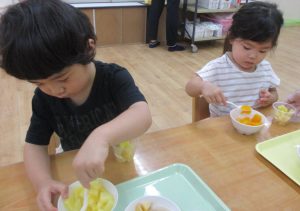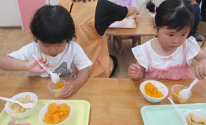 3種類のフルーツの中から好きな物を選びました👀 みかん🍊 もも🍑 パイナップル🍍
