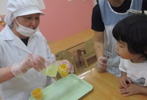 ”魔法の粉を入れるとどうなるかなぁ❓みんな興味津々に見ていました👀