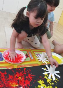花火🎆を作りました!! 2025/08/06 すみれ組みんなで花火🎆を作りました!! トイレットペーパー芯スタンプに挑戦❕ フィンガーペインティングも楽しんでいました🎵 絵の具の感触を楽しんでいます☺ みんな楽しそうですね🌟 最後まで夢中になって遊んでいました🎶 素敵な花火🎆が完成しました!! 完成した花火を嬉しそうに見つめていました👀✨ 貴重な体験ができました💓