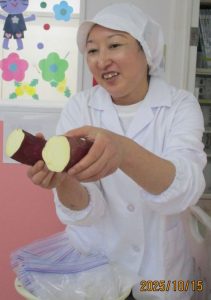『おいしいスイートポテトつくってね~!!』と仕上げは給食の先生に🍠