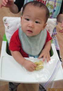 さて、みんなはさつまいもを潰すお手伝いをしますよ~🎵 上手に出来るかな??☺