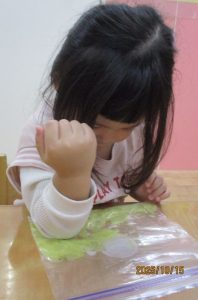 指で潰しているお友だちや肘を使って潰しているお友だちも💪色々な方法でおもしろいですね🎵
