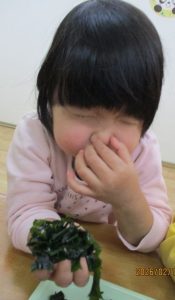 『どんなにおいする~??』と聞いてみると、こんなお顔☺ 鼻もつまみながら思わず笑ってしまいました☺