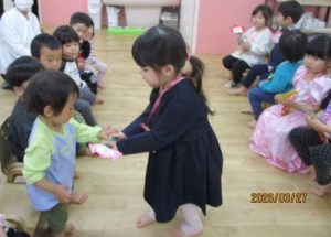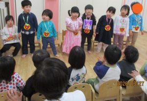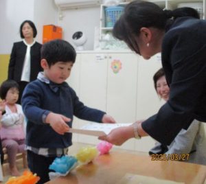 お名前を呼ばれると『はい!』と上手にお返事をして園長先生から保育証書を上手に受け取る事ができました✌✨