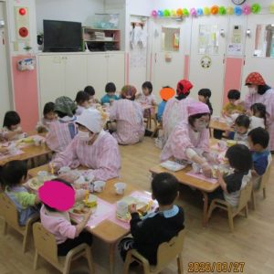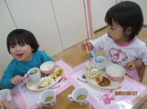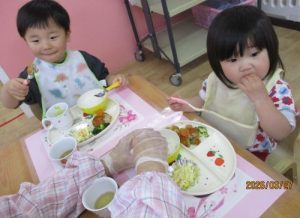 ❤可愛いランチョンマットを敷いて、いつもと違う雰囲気でお給食を楽しみました❤