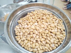 ⑤丸くなった大豆を専用の容器に入れていきます。