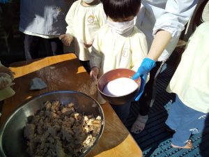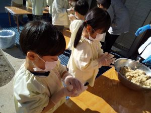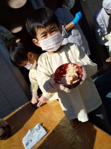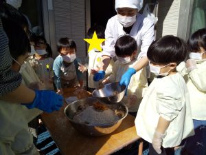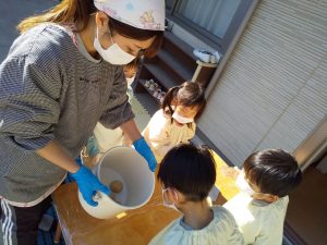 ミルキーホーム天王台園では、ばら組(4歳児クラス)で味噌づくりをおこない、
