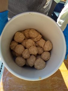 ④混ぜ終わったら、大きなおだんごづくりです。