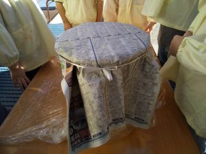⑦蓋をして、新聞紙をかぶせたら、みんなで「おいしくなぁれ」とパワーを送ります。