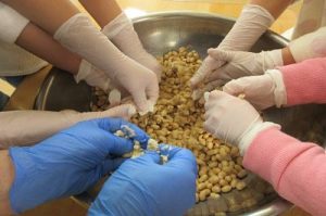 と知り、豆をつぶし、塩やこうじを入れて丸めました。