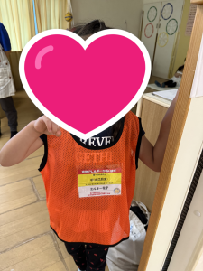 食べ物にアレルギーがある子にはビブスの着用を試しました。