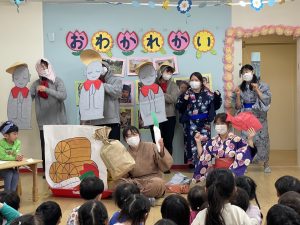 先生たちからのお楽しみでは、ばら組の時に発表会で披露した「かさじぞう」を楽しみました。