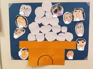 玄関にかざって、帰りにお友だちや保護者の方に見ていただきました。