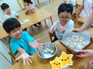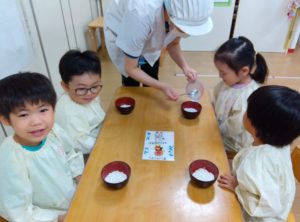 保育園では毎年子どもたちがお月見団子を作ってくれます。
