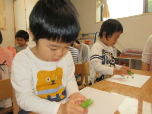 グリンピースのさやとり 2020/05/21 ふじ、ばら、ゆりぐみさんで グリンピースのさやとりをしました。 さやの中にたくさんのお豆が入っていました! 何個入っていたかみんなでお話ししていましたよ♪ グリンピースご飯、おいしかったね♪
