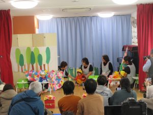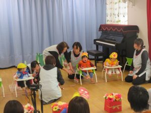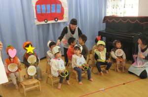 〇すみれ組 劇あそび「おべんとうバス」歌遊び「やきいもグーチーパー」