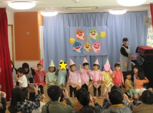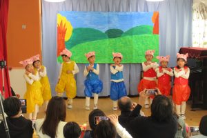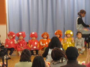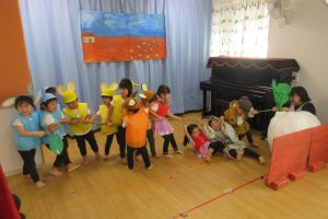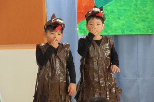ふじ組では合唱・合奏・ダンスに劇と発表会で色々なことに挑戦しました。楽しみながらそれぞれの演目の練習を行い、本番では皆泣くことなく参加できました‼また、最後の劇ではそれぞれの役になりきり大きなかぶを抜くことができました。