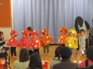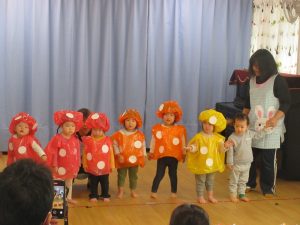 「き・き・きのこ~♪」歌詞を口ずさんだり、最後まで頑張って踊ったよ~❤