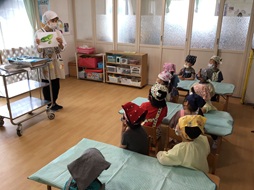 どんなお豆があったかカードを見ながらクイズです!「さやえんどう!」「グリンピースかな?」など元気に答えていましたよ。