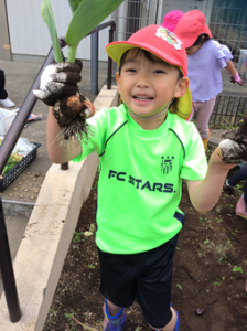子どもたちからいろいろな言葉が聞こえ、次々と嬉しそうに球根を掘り出してくれました。