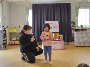 各クラスの子ども達から「おひなさま」の製作発表もありました。