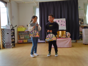 今日の日付を言う子どもと、ひな祭りの日付を言う子どもたち