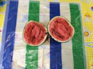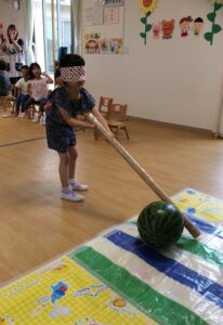先生が作ったスイカで「スイカ割りごっこ」を楽しみました♪