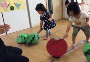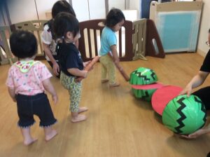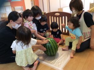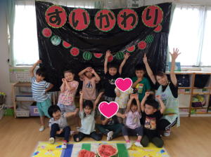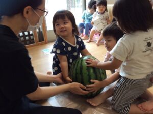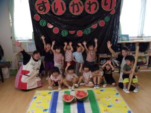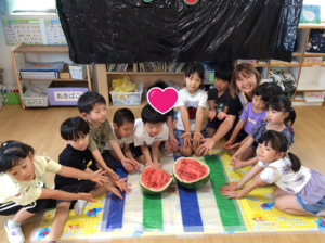 みんなで夏の風物詩「スイカ割り(ごっこ)」を楽しみました♪