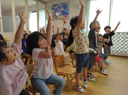 質問に「はーい!」と元気いっぱいに手をあげて答えました。