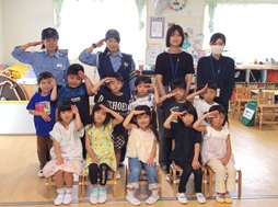 最後はみんなで記念撮影。敬礼をし警察官になりきりました。