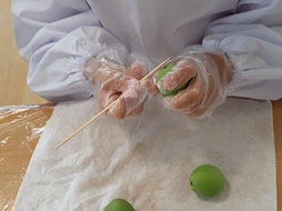 そして梅の「へた取り」に挑戦です。