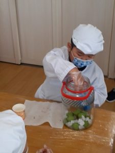 ゆり組(5歳児)の子どもたちが「梅ジュース作り」を楽しみました。